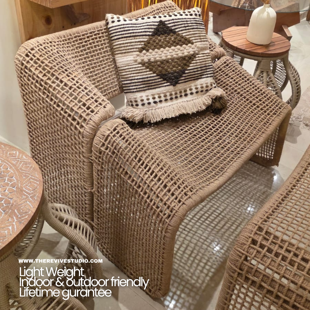 "Sekoon" Natural Jute Chair constructed wisely to insure the maximum level of comfort and durability for a lifetime with its metal chaise & jute ropes.