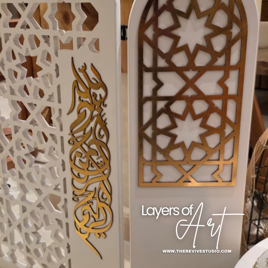 Celebrate the spirit of Ramadan with this elegant Mehrab stand, beautifully adorned with arabesque details inspired by traditional Islamic art.