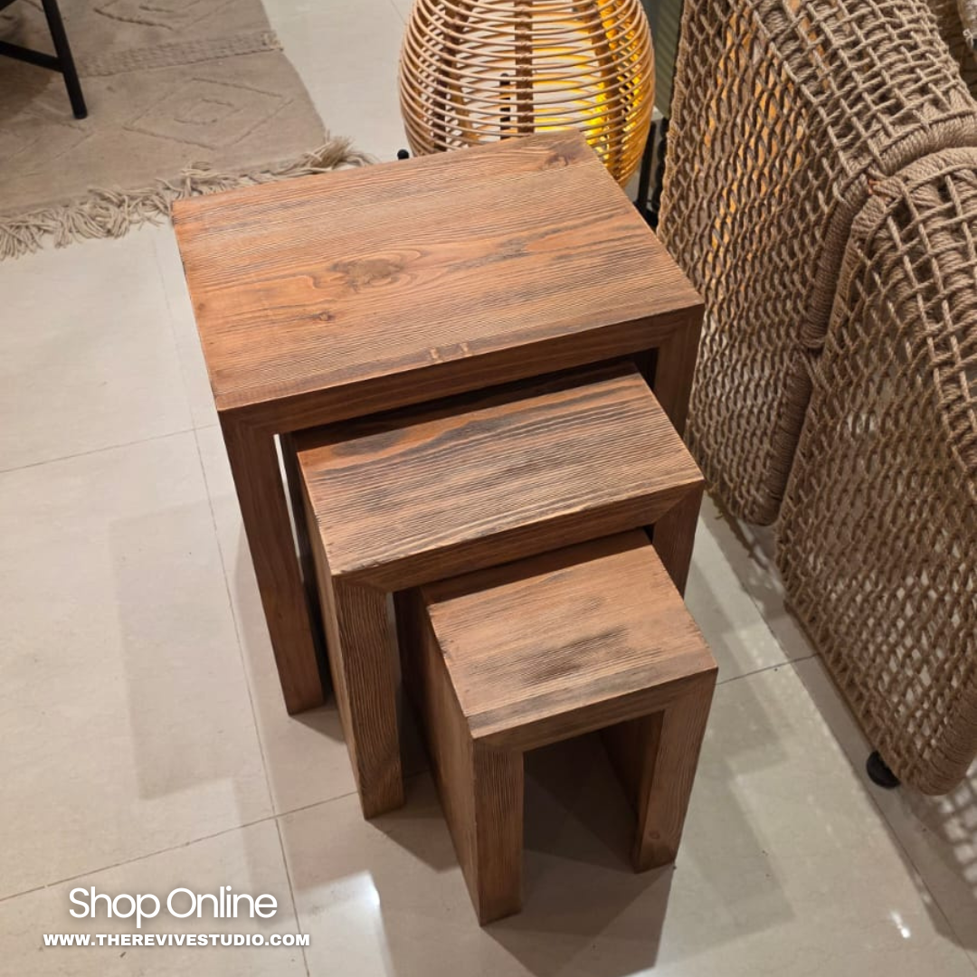 Being stackable, these tables save a lot of space when not in use. This set of 3 nesting tables is made from blue pine wood, which makes every piece solid,...